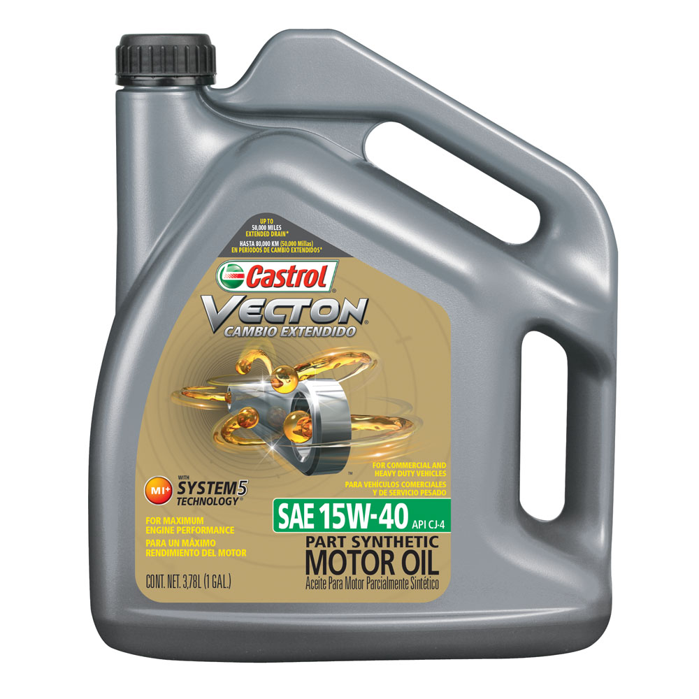 Nový olej Castrol VECTON 15W-40 je moderný motorový olej špeciálne navrhnutý pre mnohé európske a americké vznetové motory používané v cestnej doprave a pracovných stojoch. Castrol VECTON 15W-40 s unikátnou technológiou System 5 Technology™ sa prispôsobuje meniacim sa podmienkam v motore a pomáha maximalizovať výkon v 5 kľúčových oblastiach: spotreba pohonných hmôt, spotreba oleja, výmenný interval, životnosť náhradných dielov a výkon. Taktiež: Poskytuje vynikajúcu ochranu európskym, americkým a japonským motorom dokonca aj keď sú prítomné sadze a iné nečistoty. Znižuje skladové zásoby, pretože zmiešaný vozový park potrebuje iba jeden druh motorového oleja. 1Castrol VECTON 15W-40 dosiahol v nezávislých laboratórnych testoch o 40% lepšiu výkonnosť ako požadujú API a ACEA priemyselné štandardy v oblasti zahusťovania oleja, ukladania nečistôt na piestoch, spracovania sadzí, opotrebovania a korózie.